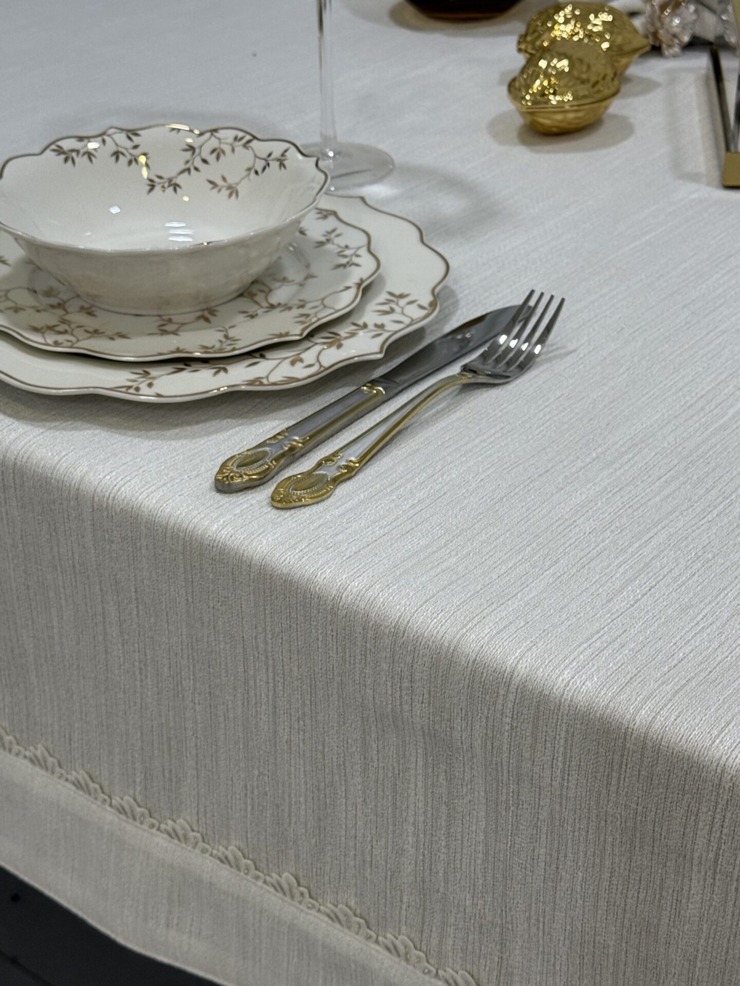 מפת שולחן מבד תחרה יוקרתי בשילוב בד ביטנה עמיד