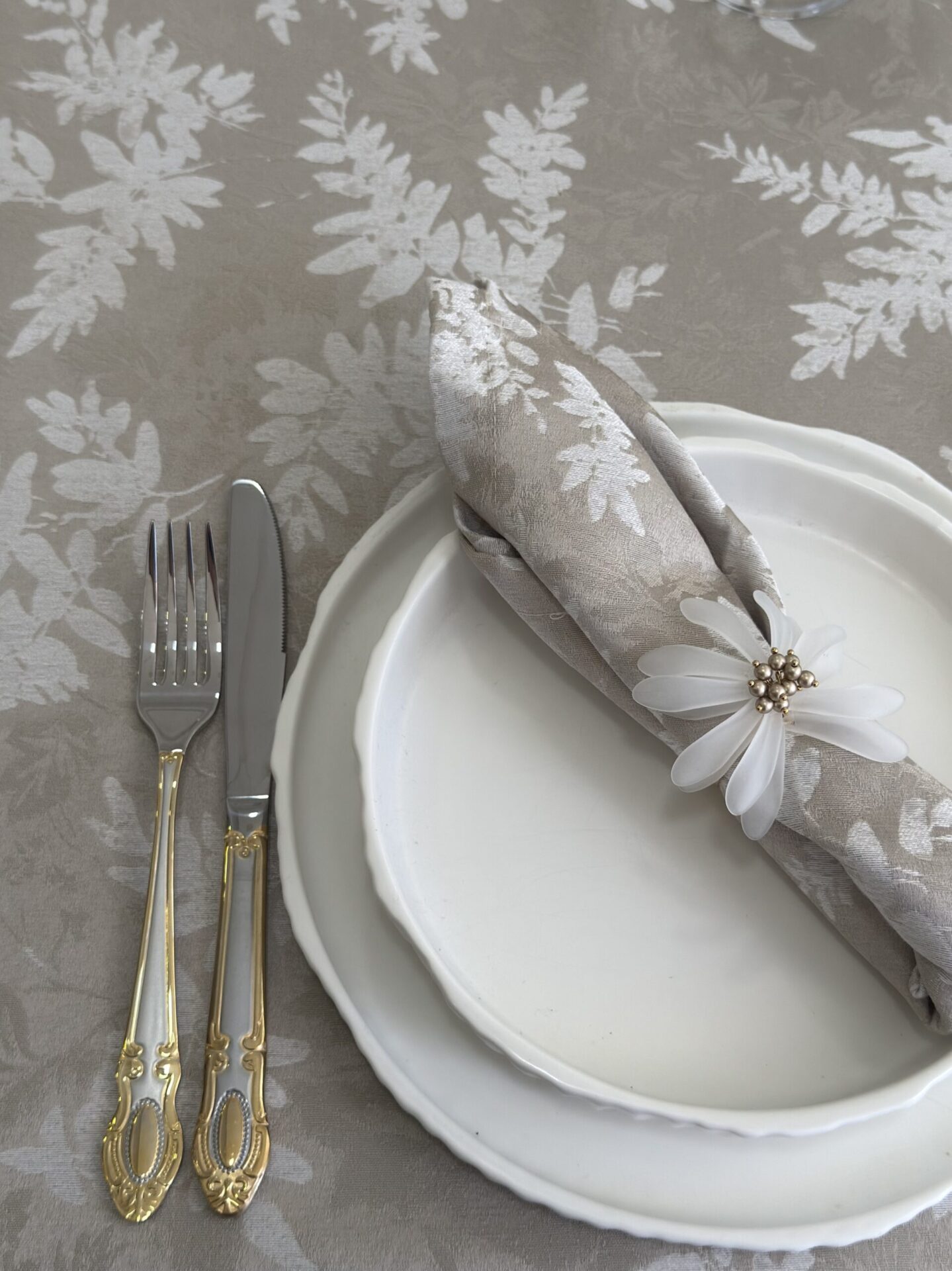מפת שולחן מבד ברוקרד איכותי. רחיץ ובמראה יוקרתי וקלאסי לעיצוב שולחן מדוייק